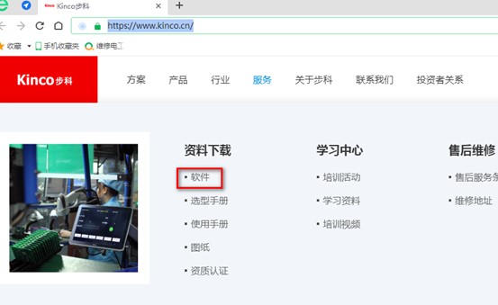 1.打開(kāi)瀏覽器輸入網(wǎng)址https://www.kinco.cn/